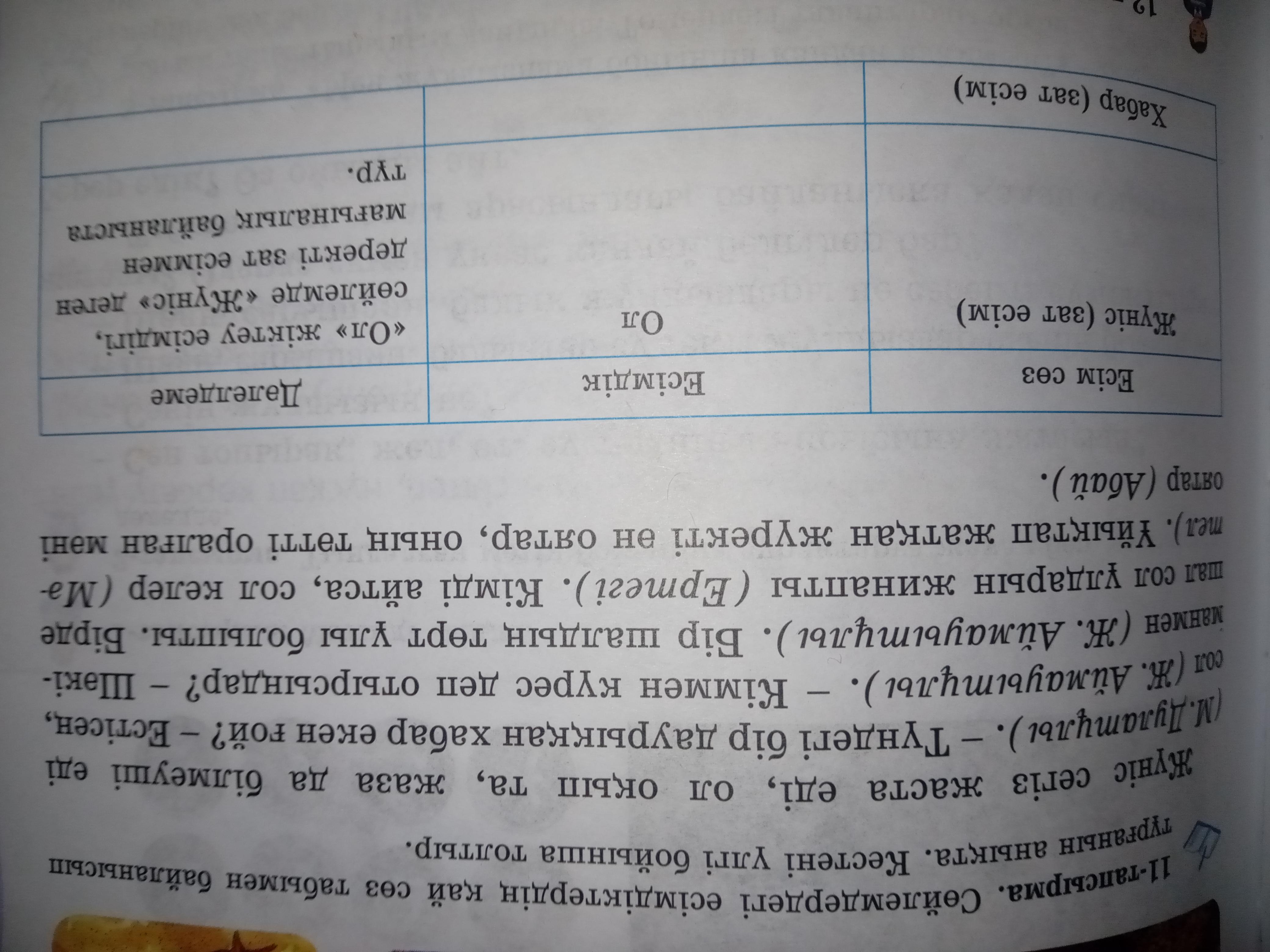 Сөйлемдегі есімдіктердің қай сөз табымен байланысып тұрғанын анықта. Кестені үлгі бойынша толтыр.