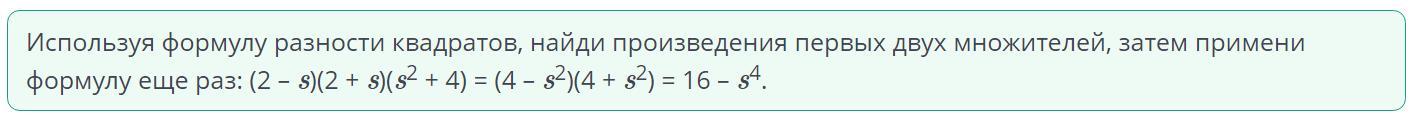 Разность квадратов двух выражений. Урок 2 4s2 + s4 –s4 – 8 4s2 – s4 s4 – 16 16 – s4