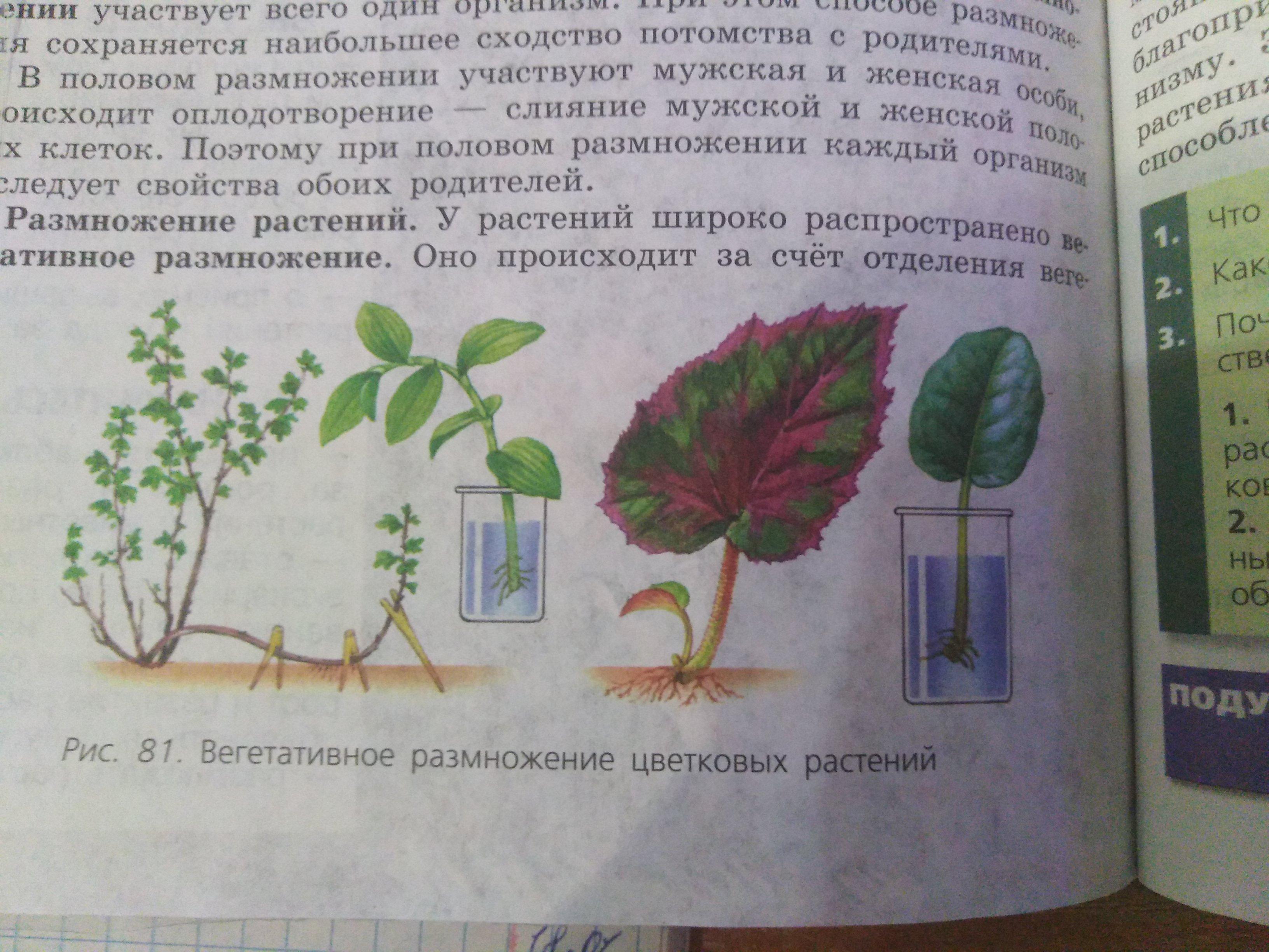 По рисунку составе план рассказа о вегетативном размножение цветовых растений. Приведите примеры.