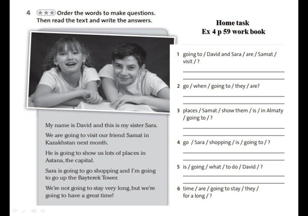 1)David and Sara going to visit Samat