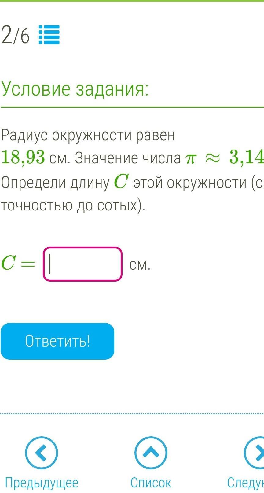 С=2×3,14×18,93= 118,8804 ≈ 118,88