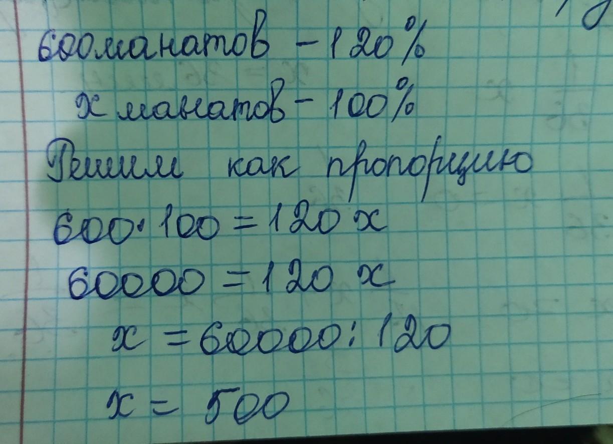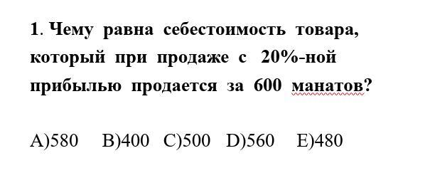 Чему равна себестоимость товара, который при продаже с 20%-ной прибылью продается за 600 манатов?