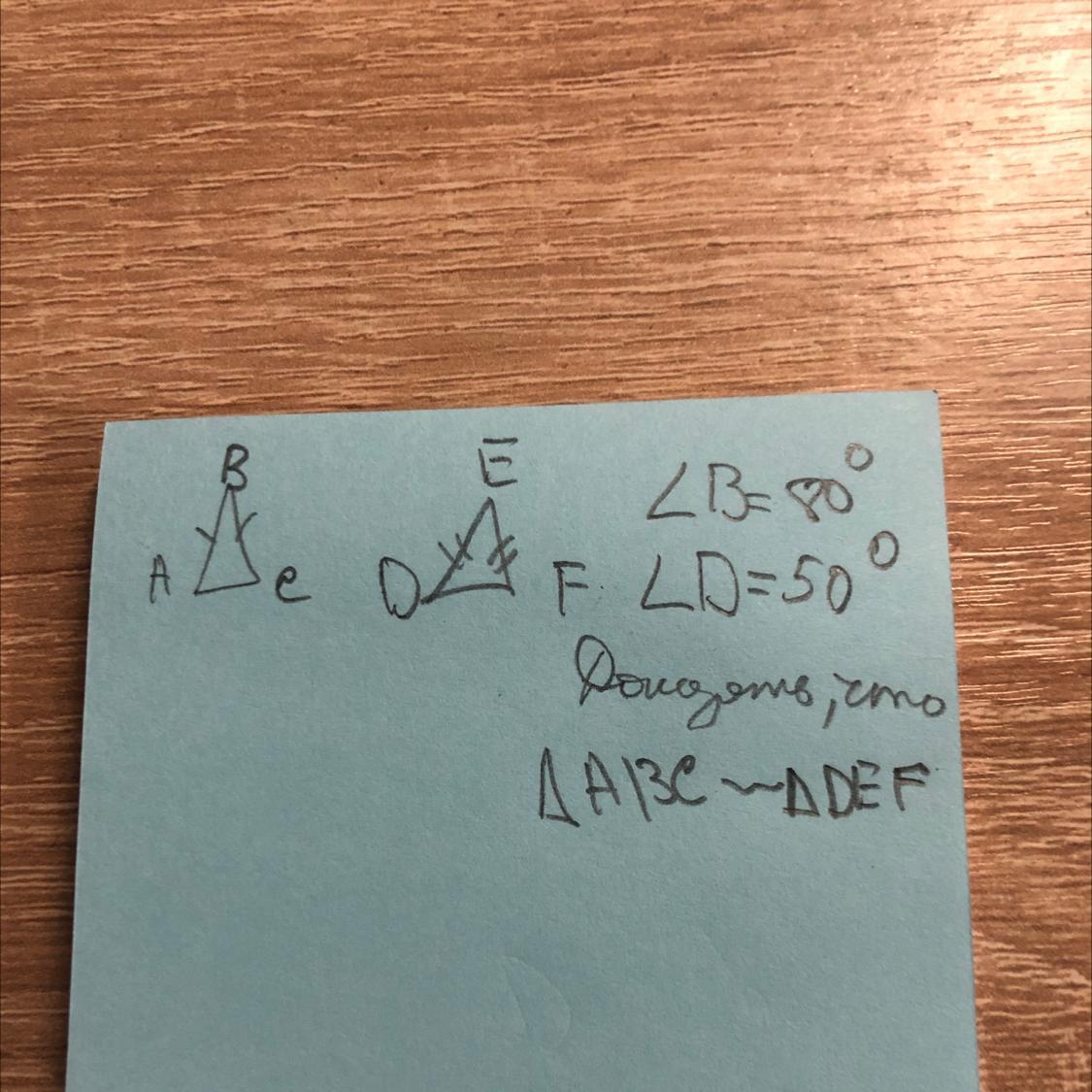 Два подобных треугольника, угол В=80 уголD=50градусов доказать что треугольник аbc подобен тругольнику def