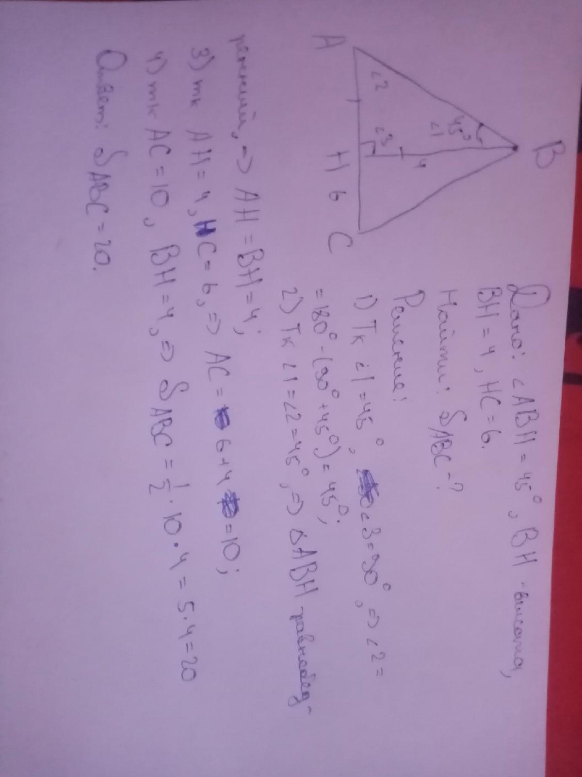 ∠А=∠В=45°⇒ΔABH - равнобедренный, значит AH=BH=4