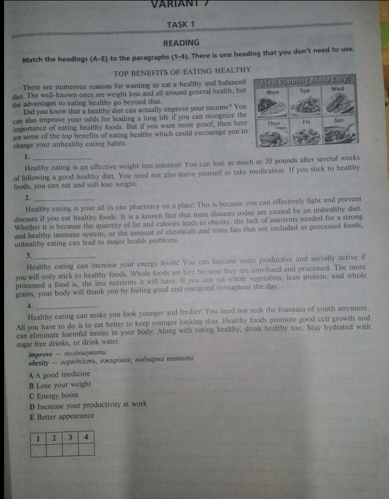 match the headings (A-E) to the paragraphs (1-4). There is one headings that you don't need to use. " Top Benefits Of Eating Healthy"