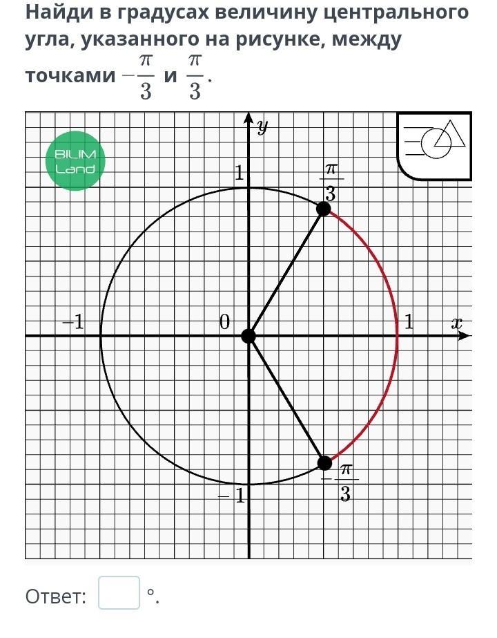 Найди в градусах величину центрального угла, указанного на рисунке, между точками