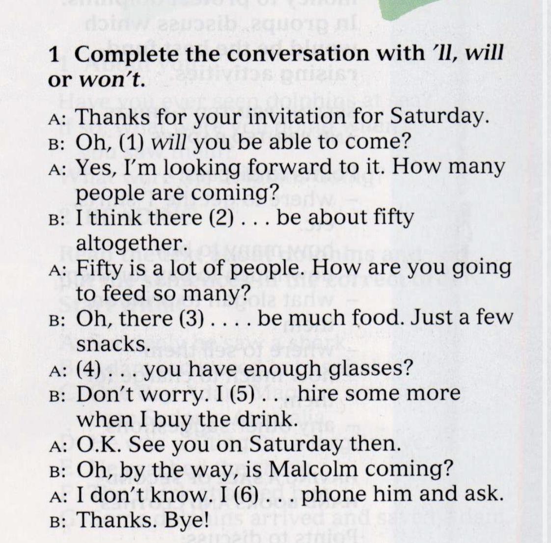 2.will 3.won’t 4.will 5.’ll. 6.’ll.