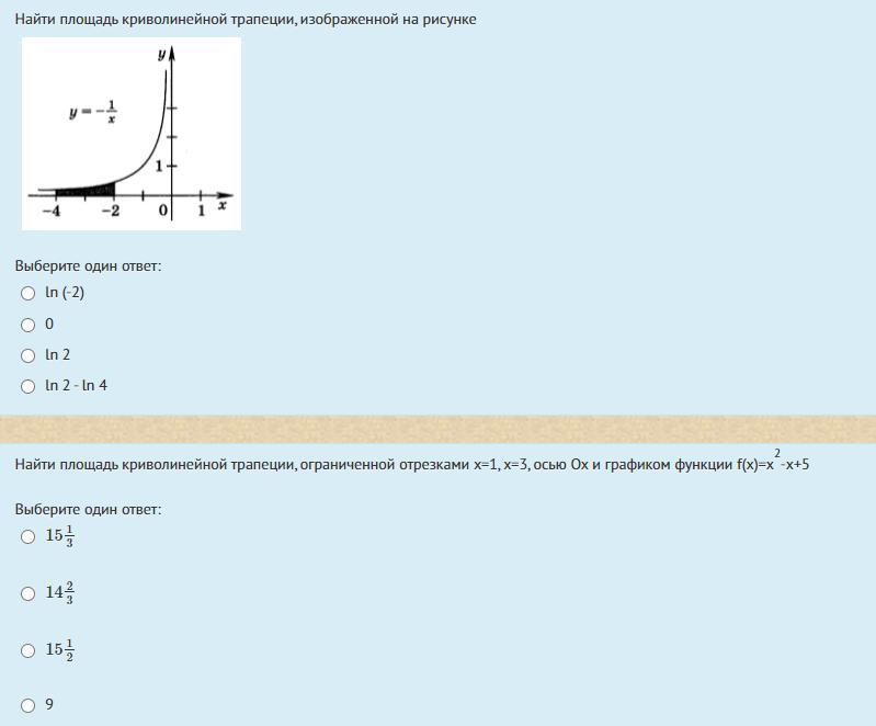 1) Площадь криволинейной трапеции есть определенный интеграл Римана на заданном промежутке.