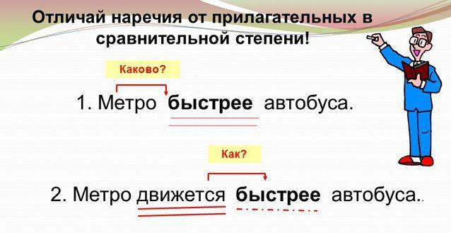 Ответ: Главное отличие заключается в том, что наречие относится к глаголу, а прилагательное – к существительному.