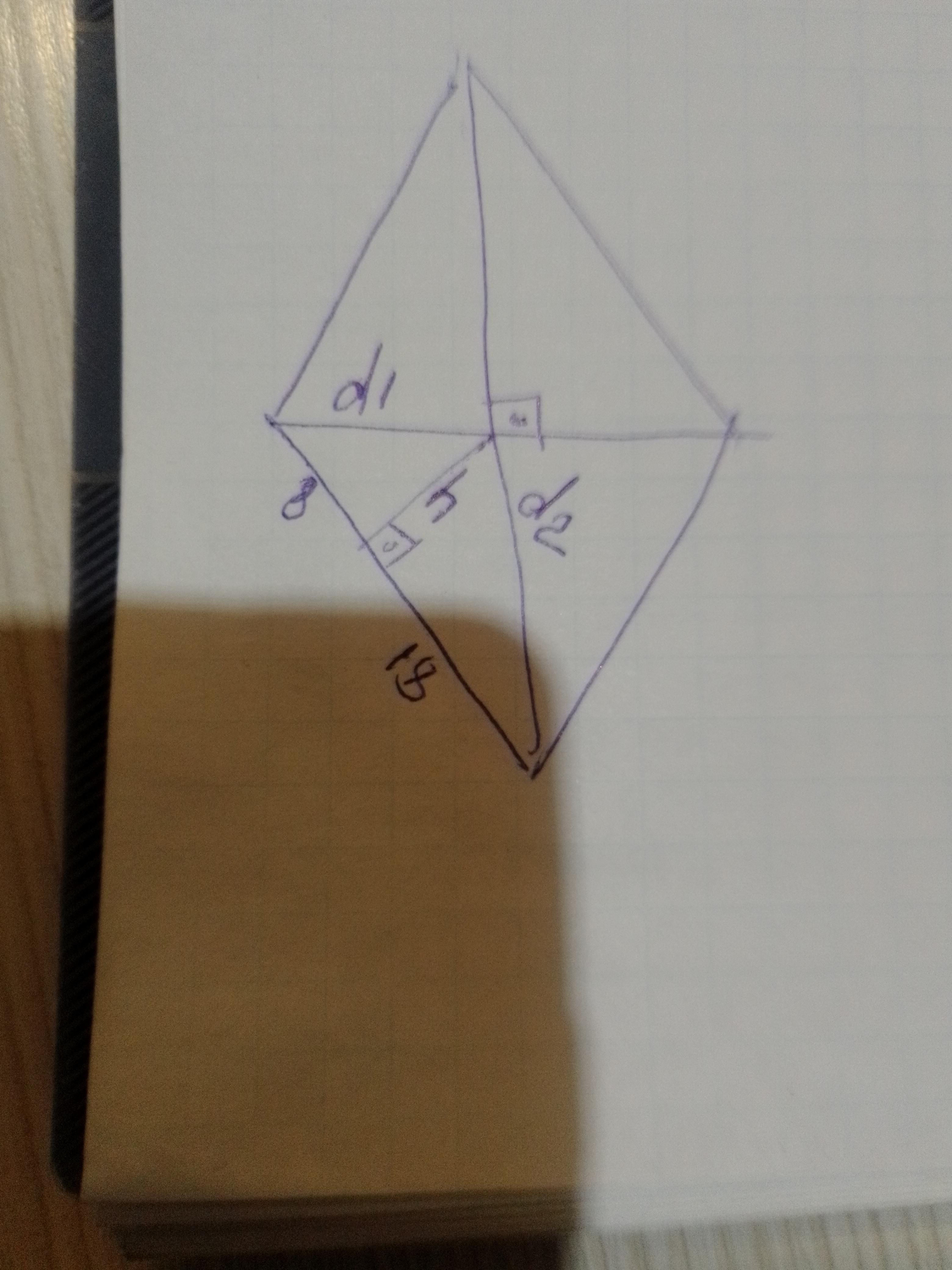 Пеньикуляр ,проведений із точки перетину діагоналей ромба до сторони, ділить її на відрізок довжиною 8 см і 18 см знайдіть діагональ ромба пожалуйста