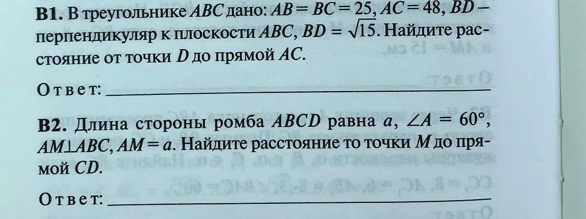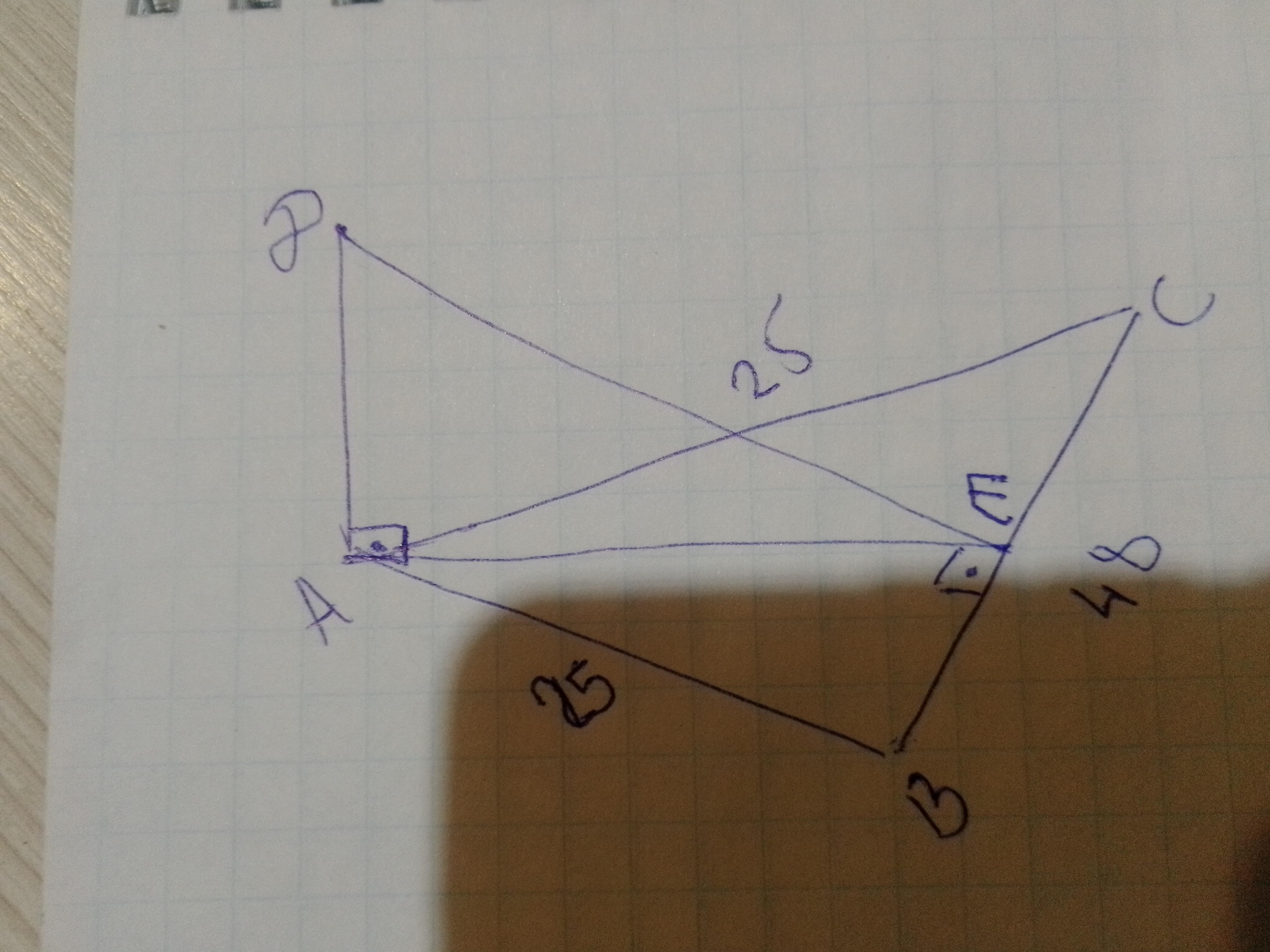 Короче, находишь высоту в равнобедренном ∆АВС,. h=√(25^2-24^2)=7