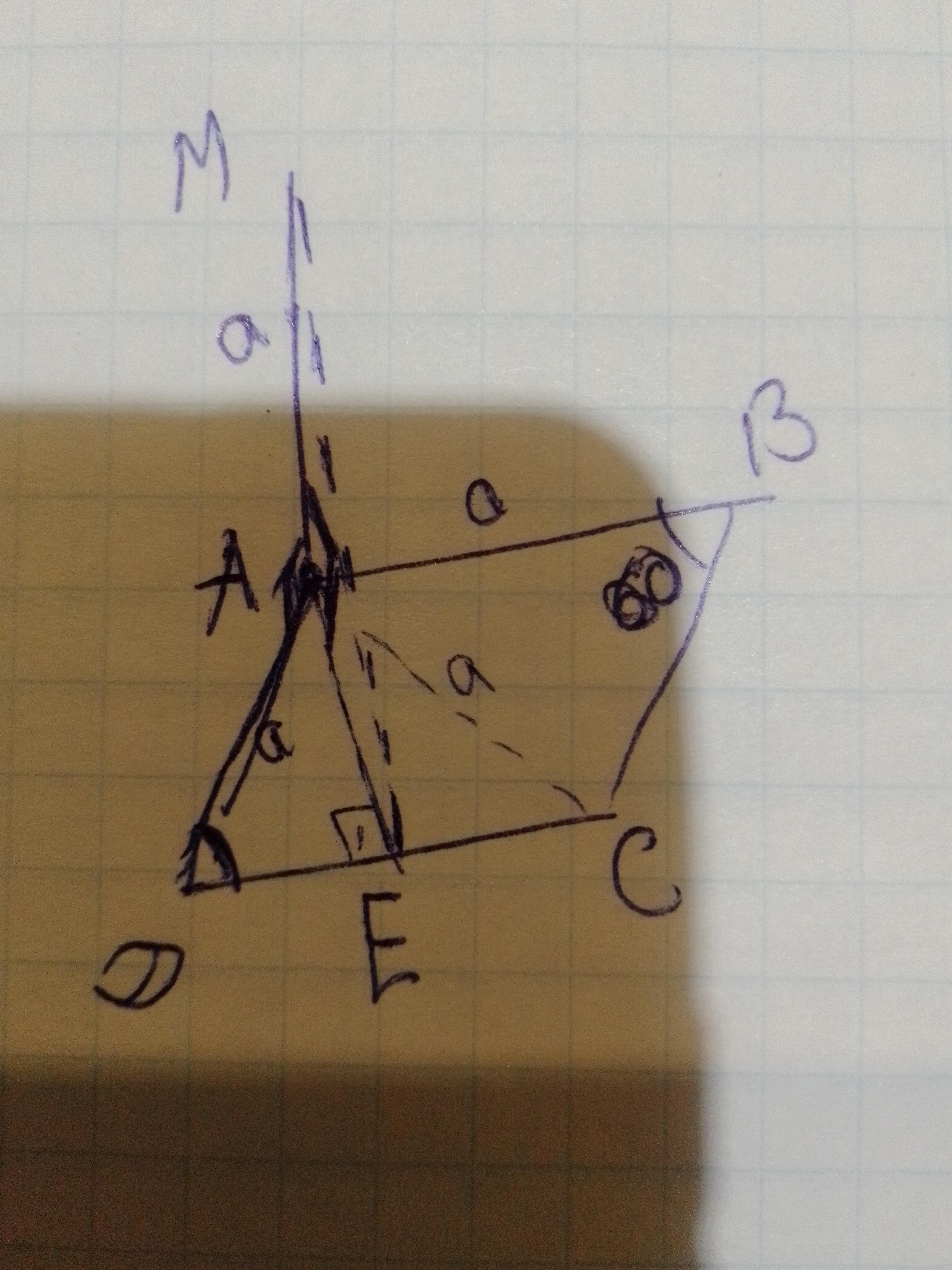 ∆МАЕ,. .<А=90, АМ=а. МЕ=√(АМ^2+АЕ^2)= √(а^2+(а√3/2)^2)=