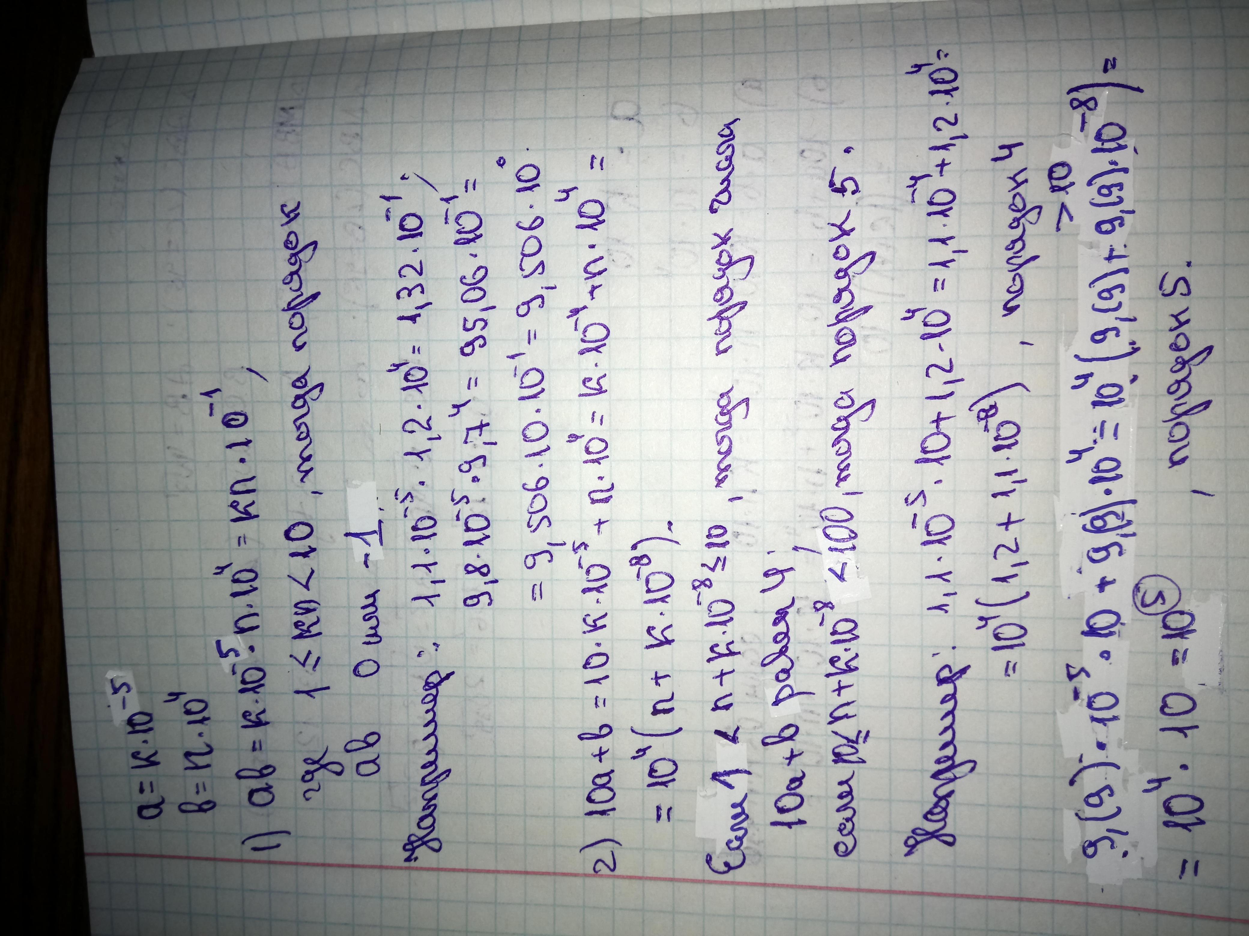 порядок числа а равен - 5, а порядок числа b равен 4. Каким может быть порядок значения выражения: a)ab б)10a+b?