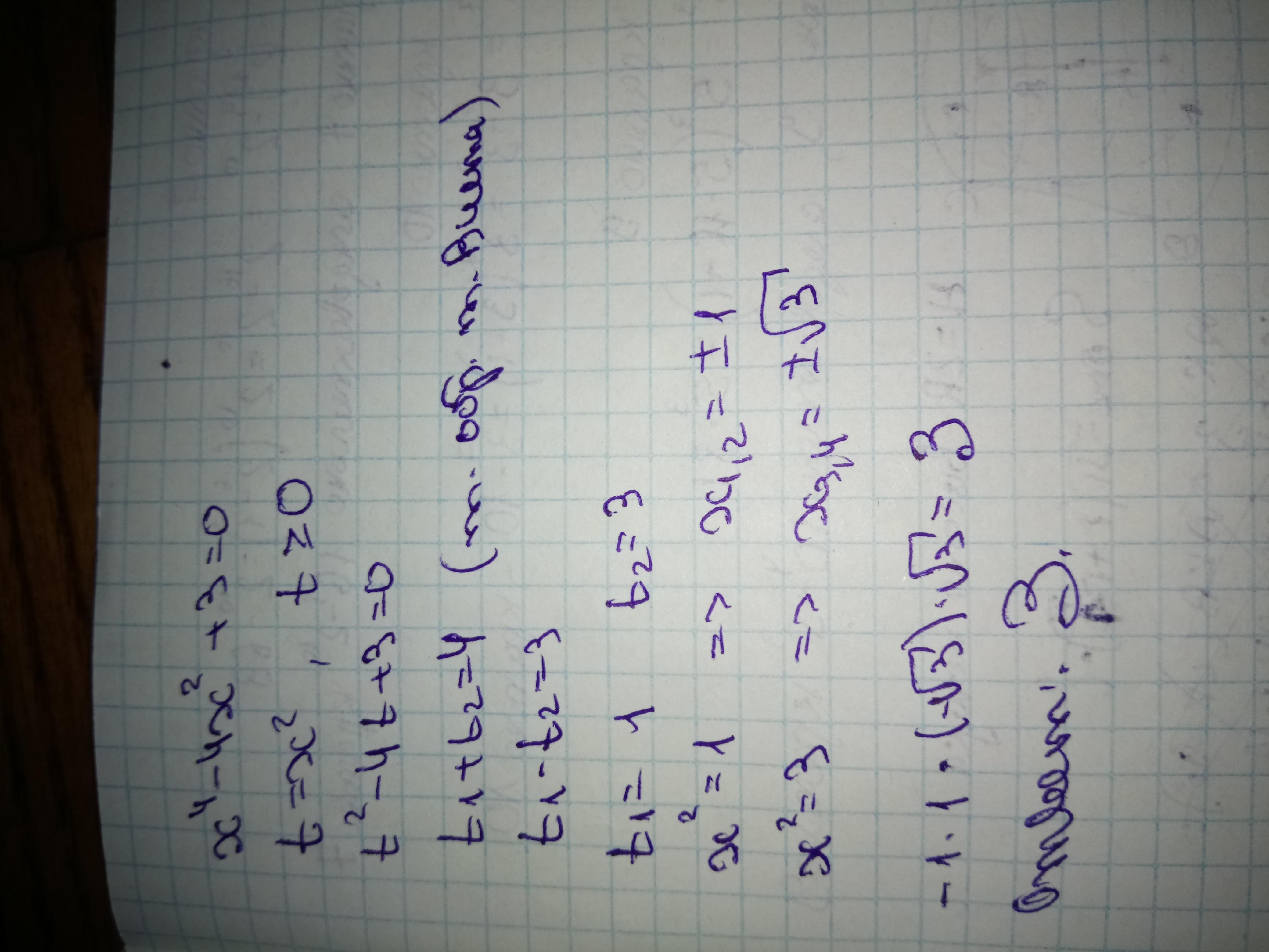 По определению биквадратным называется целое уравнение в котором неизвестное записано только в 4ой 2ой и нулевой степени, чтобы его решить применяют замену неизвестных в этих степенях на неизвестное с показателем степени два раза меньшим, следовательно: