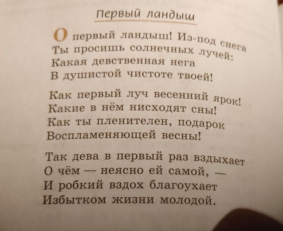 Тема стихотворения – Возрождение природы после долгого зимнего сна. Неразрывная связь природы и человека. Олицетворением наступающей весны и грядущих радостных перемен служит первый ландыш, тянущийся к тёплым солнечным лучам. Природа стремится навстречу солнцу, даруя новую жизнь. В своём стихотворении Фет пытается донести читателям простую идею – истинное счастье и полнота жизни возможны только в том случае, если научиться искренне любить окружающий мир. В каждом лепестке, в каждой травинке можно увидеть настоящее чудо, несущее радость и свет.