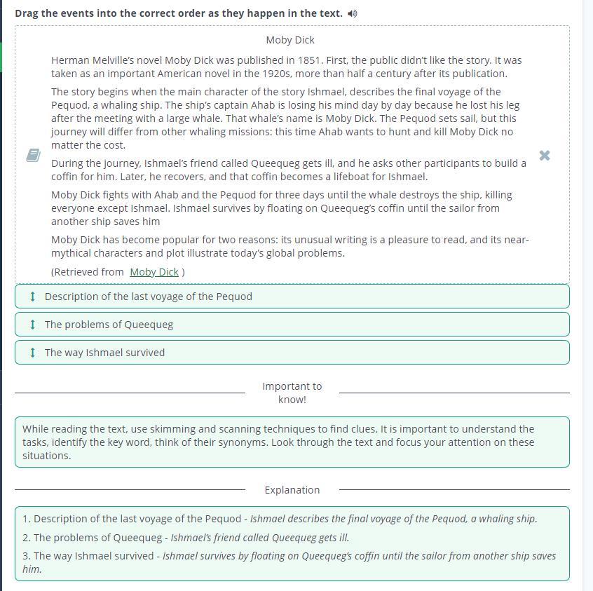 Drag the events into the correct order as they happen in the text.