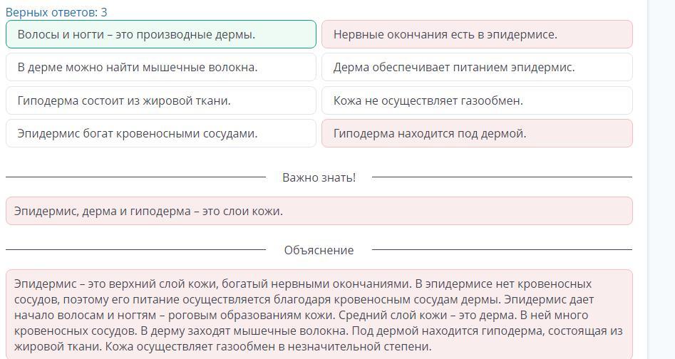 Эпидермис богат кровеносными сосудами.Волосы и ногти – это производные дермыКожа не осуществляет газообмен