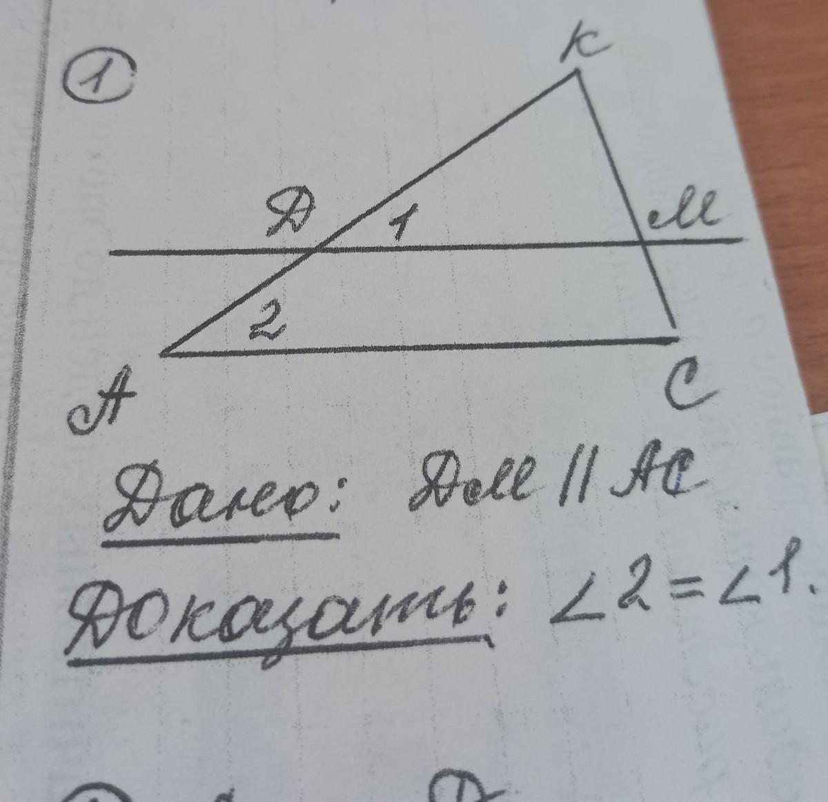 Объяснение: Так как DM II AC, Угол 1 = углу 2 (аксиома соответственных углов)