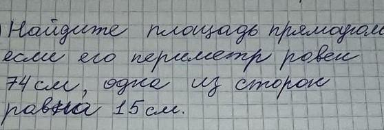 пожайлуйста помогите .найдите площадь прямоугольника если его периметр равен 74 см а одна из сторон равна 15.Полностью!!