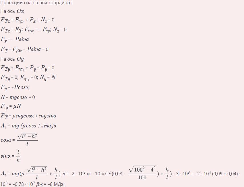 Автомобиль массой 2 т, двигаясь равномерно, через каждые 100 м поднимается на гору, высота которой 4 м. Чему равна работа двигателя машины, если она проехала 3 км за 4 минуты? Коэффициент трения равен 0,08.