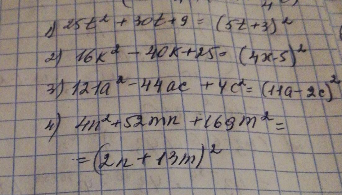 Представьте в виде квадрата двучлена трехчлены