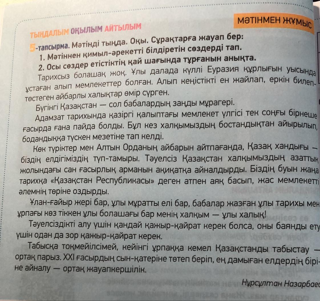1. Мәтіннен қимыл-әрекетті білдіретін сөздерді тап.
