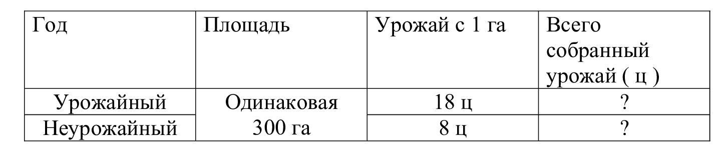 ДОМАШНЕЕ ЗАДАНИЕ 11 Реши задачу. В урожайный год фермеру удалось собрать 18 ц а в неурожайный — только 8 ц/га. Какой уро» пшеницы он собирал в каждый из этих годов, если под пшеницу у него отведено 300га ? составьте таблицу пожалуйста по задаче
