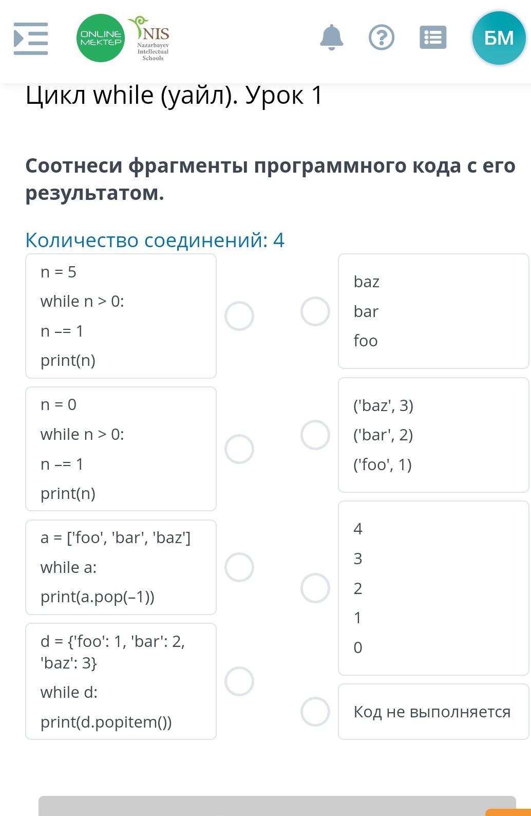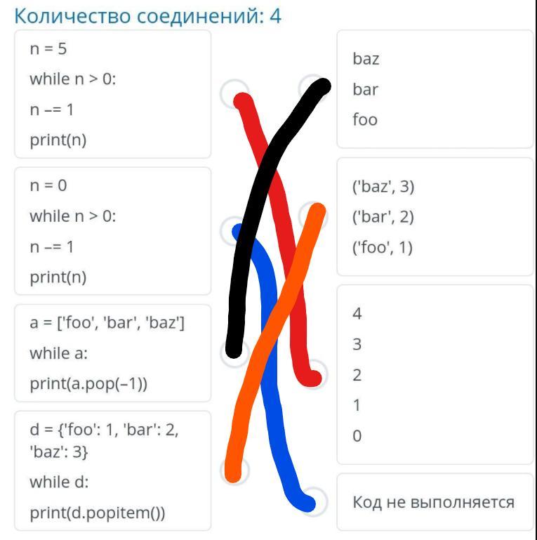 Цикл while (уайл). Урок 1 Соотнеси фрагменты программного кода с его результатом. Количество соединений