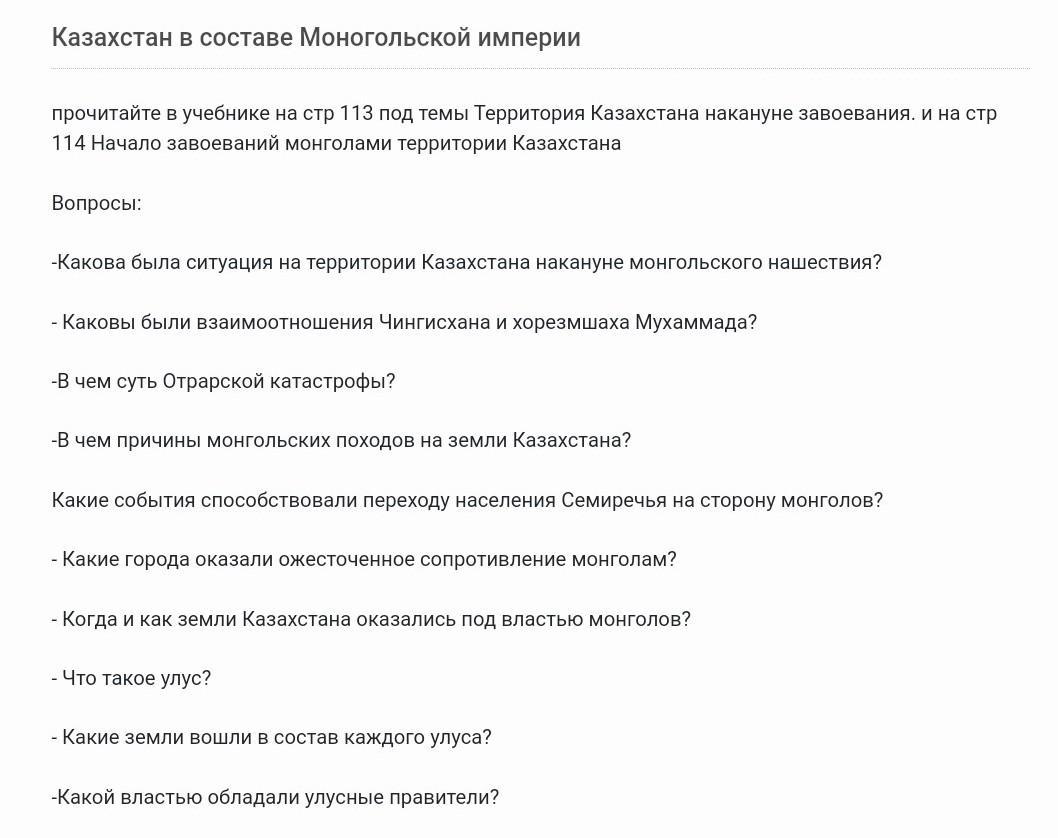 Монголы разграбляли и сжигали Хорезмийские города. Чингисхан не имел ненависти к Мухаммеду || Улус-это регион монгольской империи. Большая часть Казахстана отошла младшему сыну Чингисхана Кулькану. Остальная часть Чагатая.