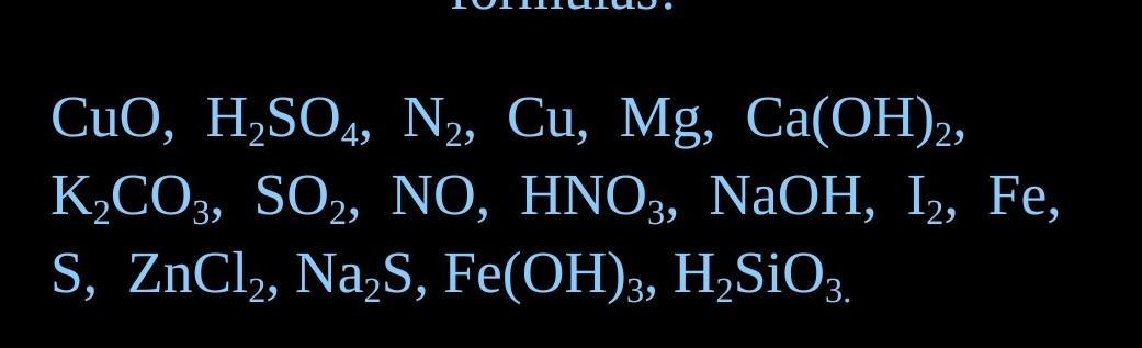 не металлы: H2SO4 N2 SO2 NO HNO3 NaOH I2 S Fe(OH)3 H2SiO3 Na2S