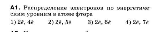 распределение электронов по энергетическим уровням в атоме фтора 1)2е`,4е`; 2)2е`,5е`; 3)2е`,6е`; 4)2е`,7е`