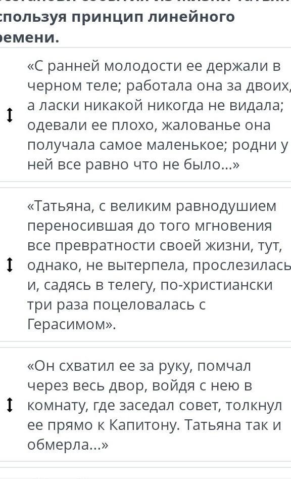 Восстанови события из жизни Татьяны, используя принцип линейного времени.
