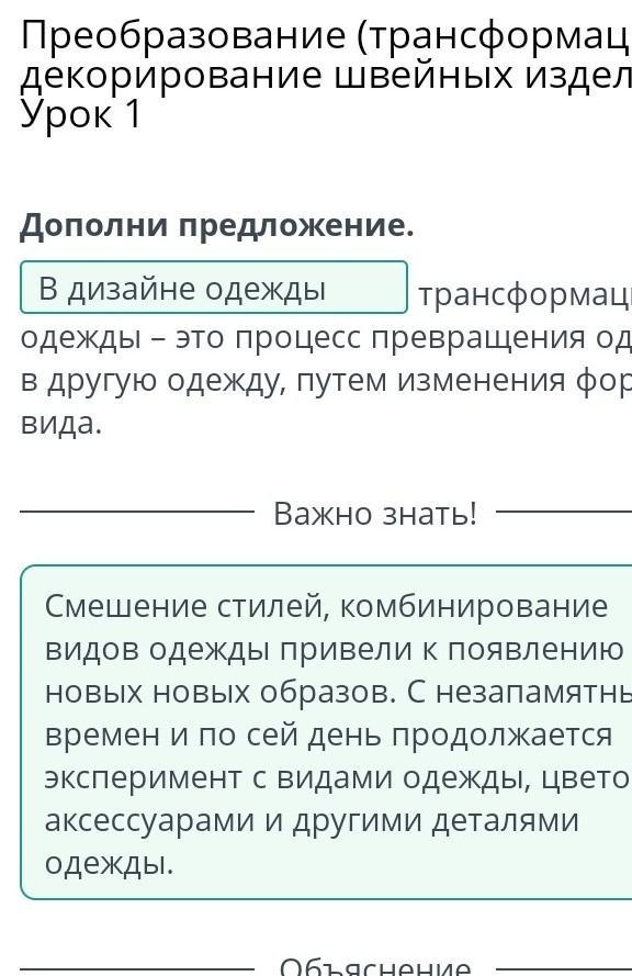 дополни предложения трансформация одежда это процесс перевоплощения одежду в другую одежду путём изменения формы и вида.