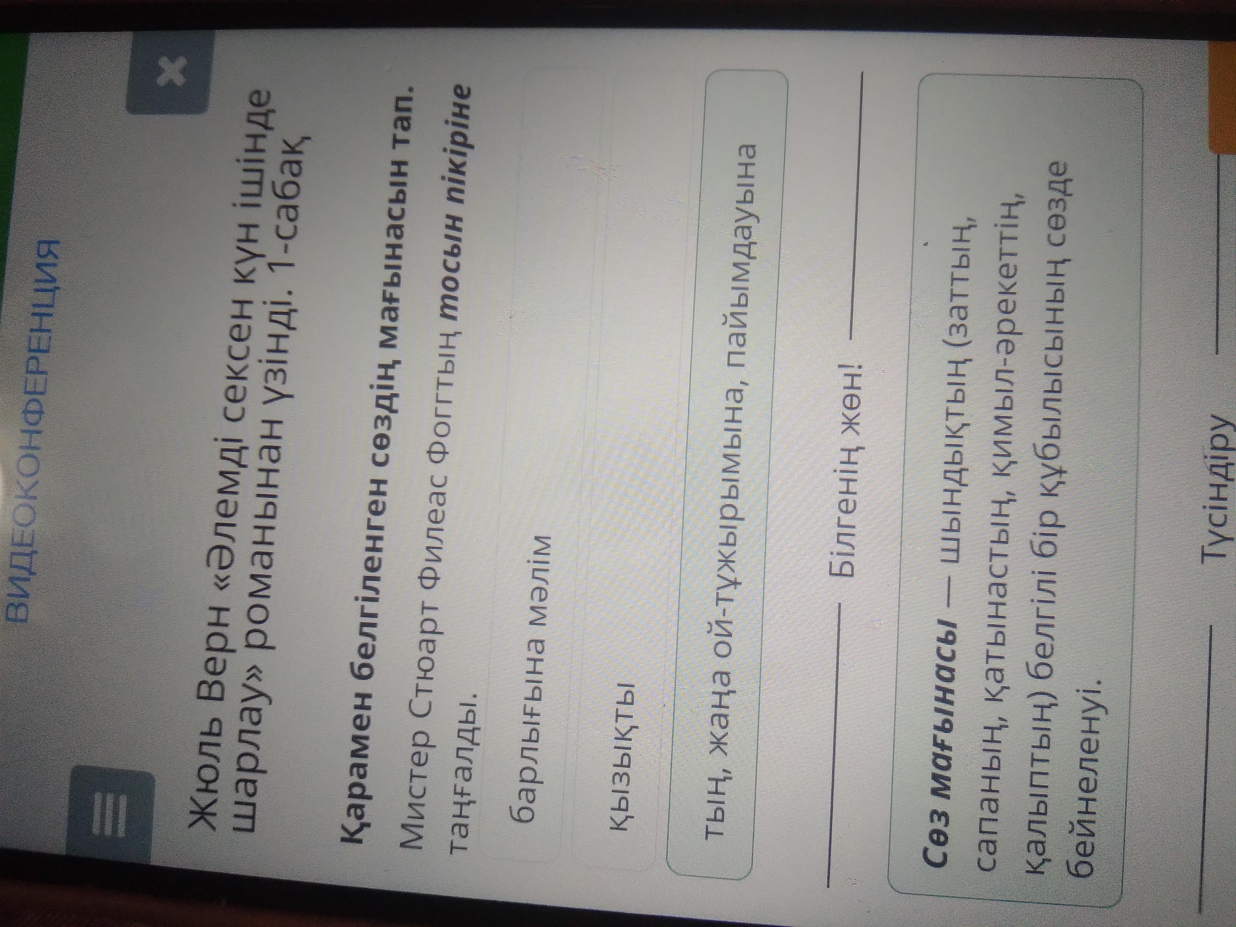 Жюль Верн «Әлемді сексен күн ішінде шарлау» романынан үзінді. 1-сабақ Қарамен белгіленген сөздің мағынасын тап. Ол сапарға сақадай сай тұрған Филеас Фоггқа қосылады. жақын дайын алыс
