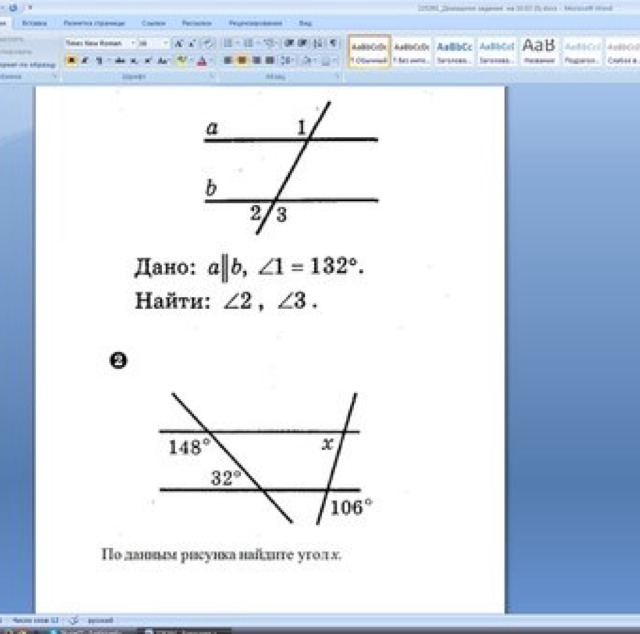 Угол , смежный с углом два , равен углу 1 как односторонний , следовательно , равен 180-132 = 48 , угол 3 , как смежный с углом 2 равен 180-48 = 132