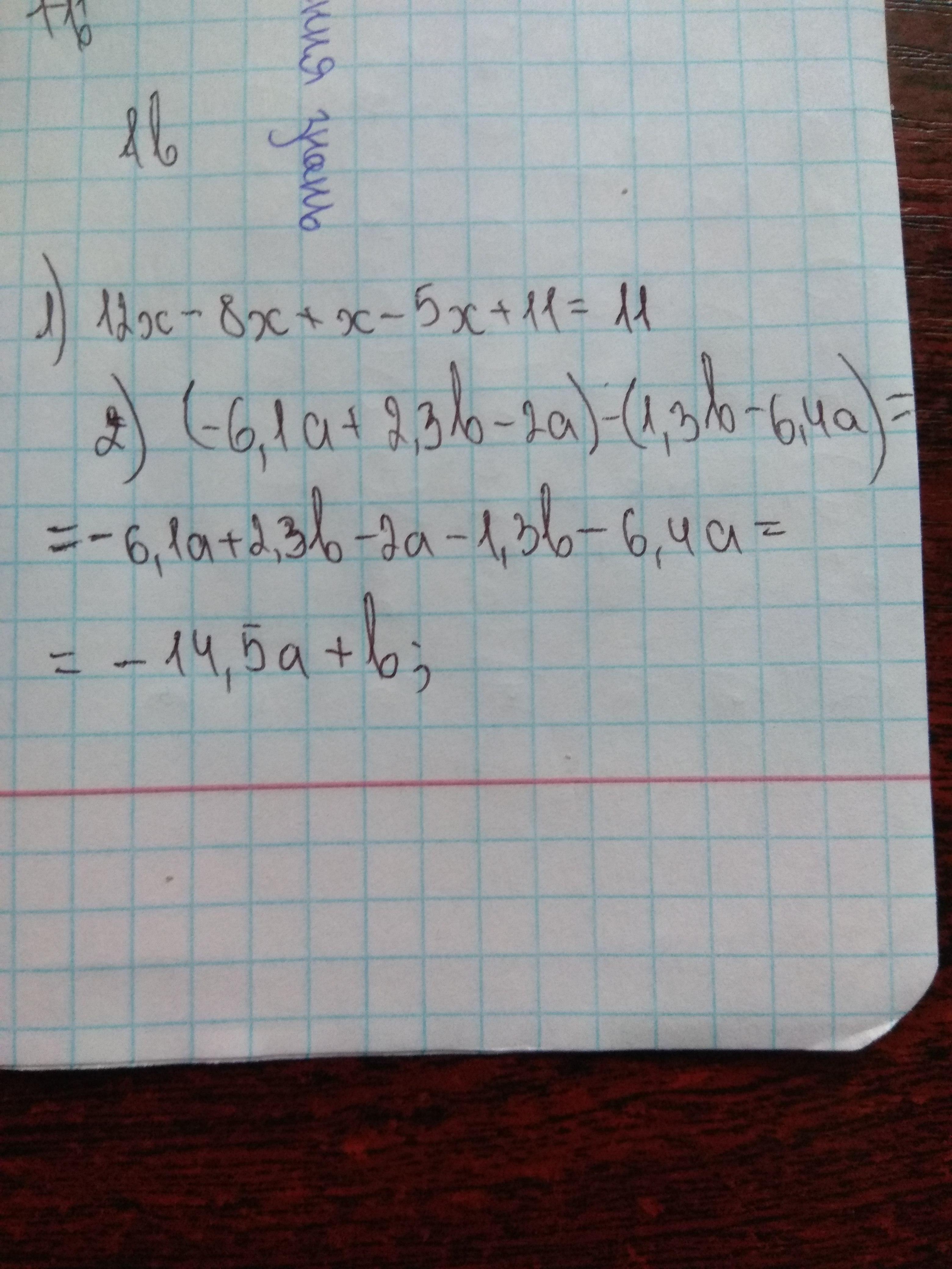(-6.1a+2.3b-2a)-(1.3b-6.4a);