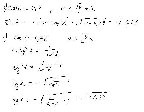 1) Вычислите sin a, если cos a = 0,7 и a - угол 4 четверти