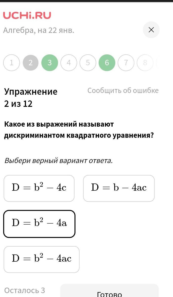 Дискриминантом кв.уравнения наз.выражение Д=в²- 4ас