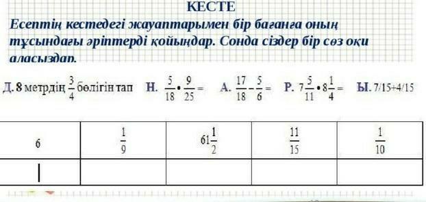 КЕСТЕ Есептің кестедегі жауаптарымен бір бағанға онын түсіндегі арыңды қояйындар. Сонда сіздер бір сөз оки аласыздап.
