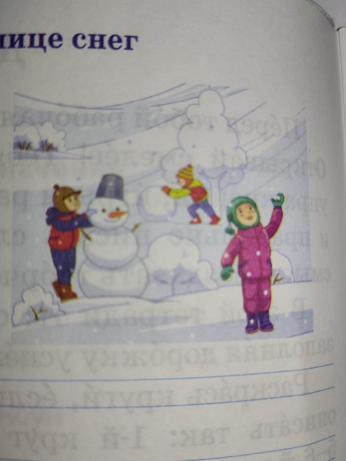 Урок 33. Когда на улице снег Рассмотри картинку и запишй её сюжёт по плану: 1. Какое время года? 2. Что лёпят дёти? 3. Чем они украсили фигурку? 4. Какӧе настроение у всех?