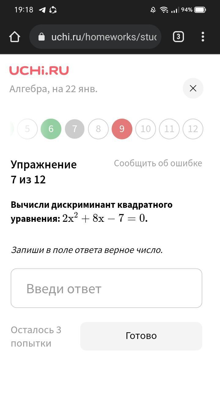 Вычислить дискриминант: