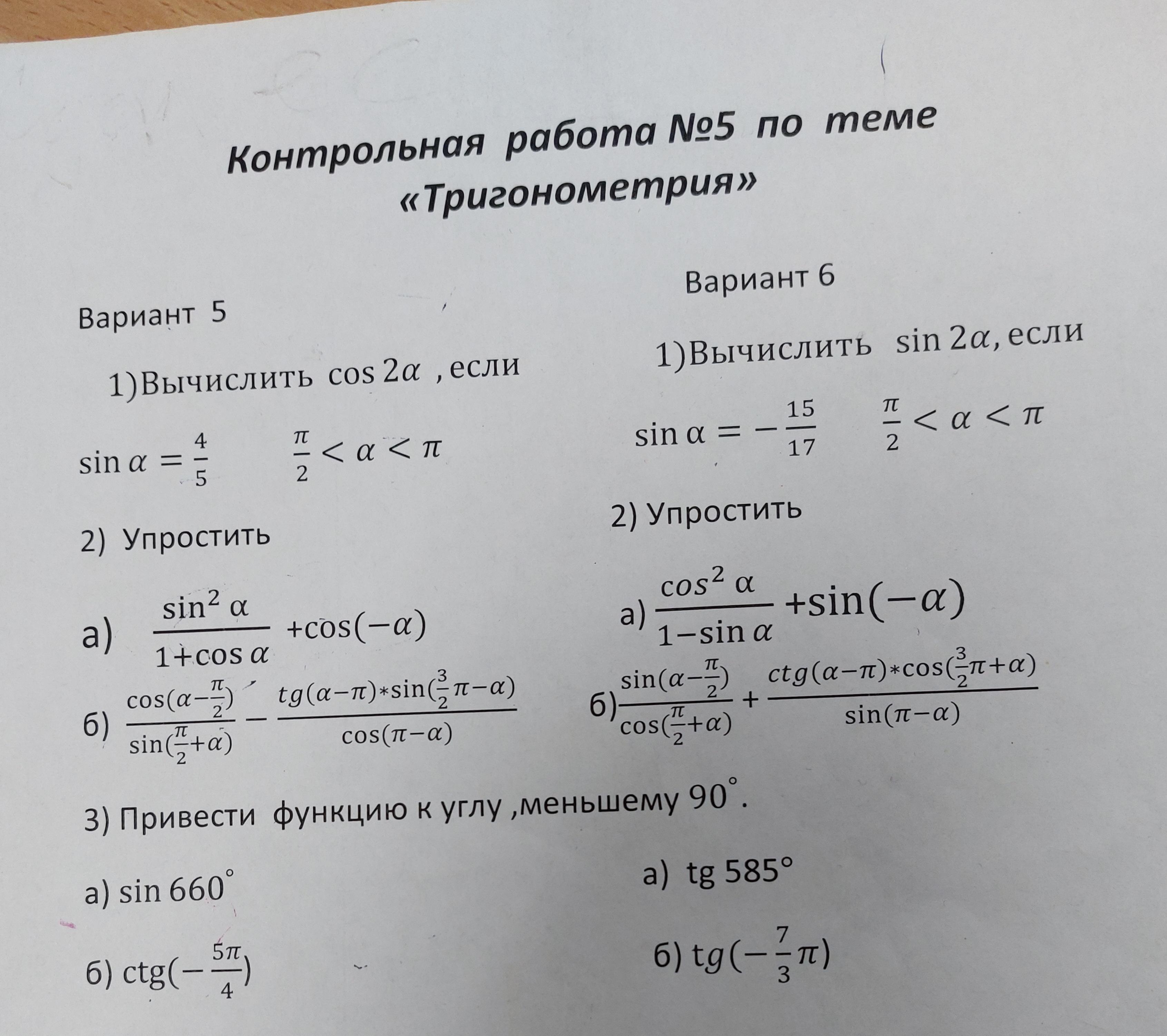 3) Привести функцию к углу, меньшему 90(градусов)