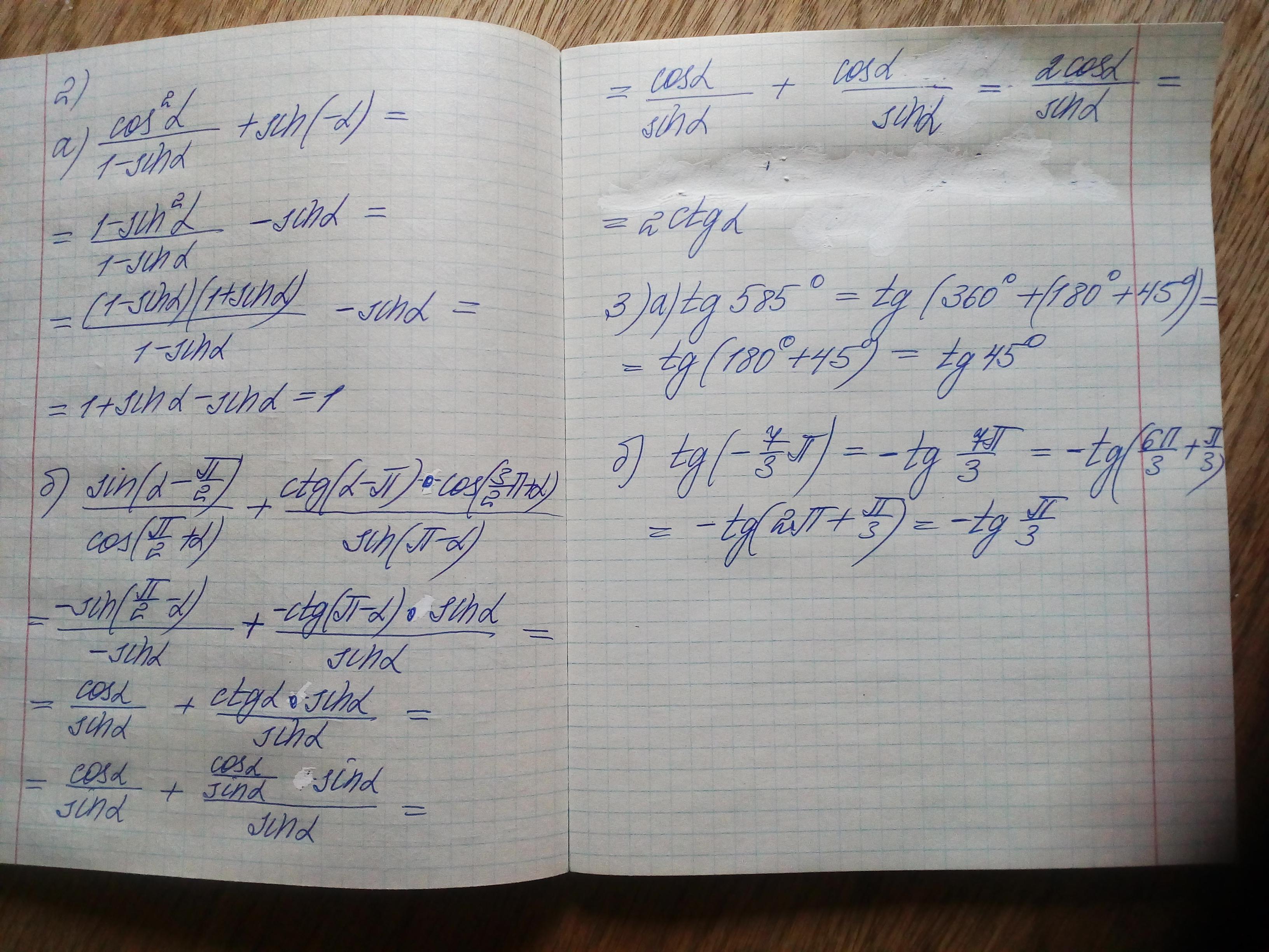 а) tg585(градусов)