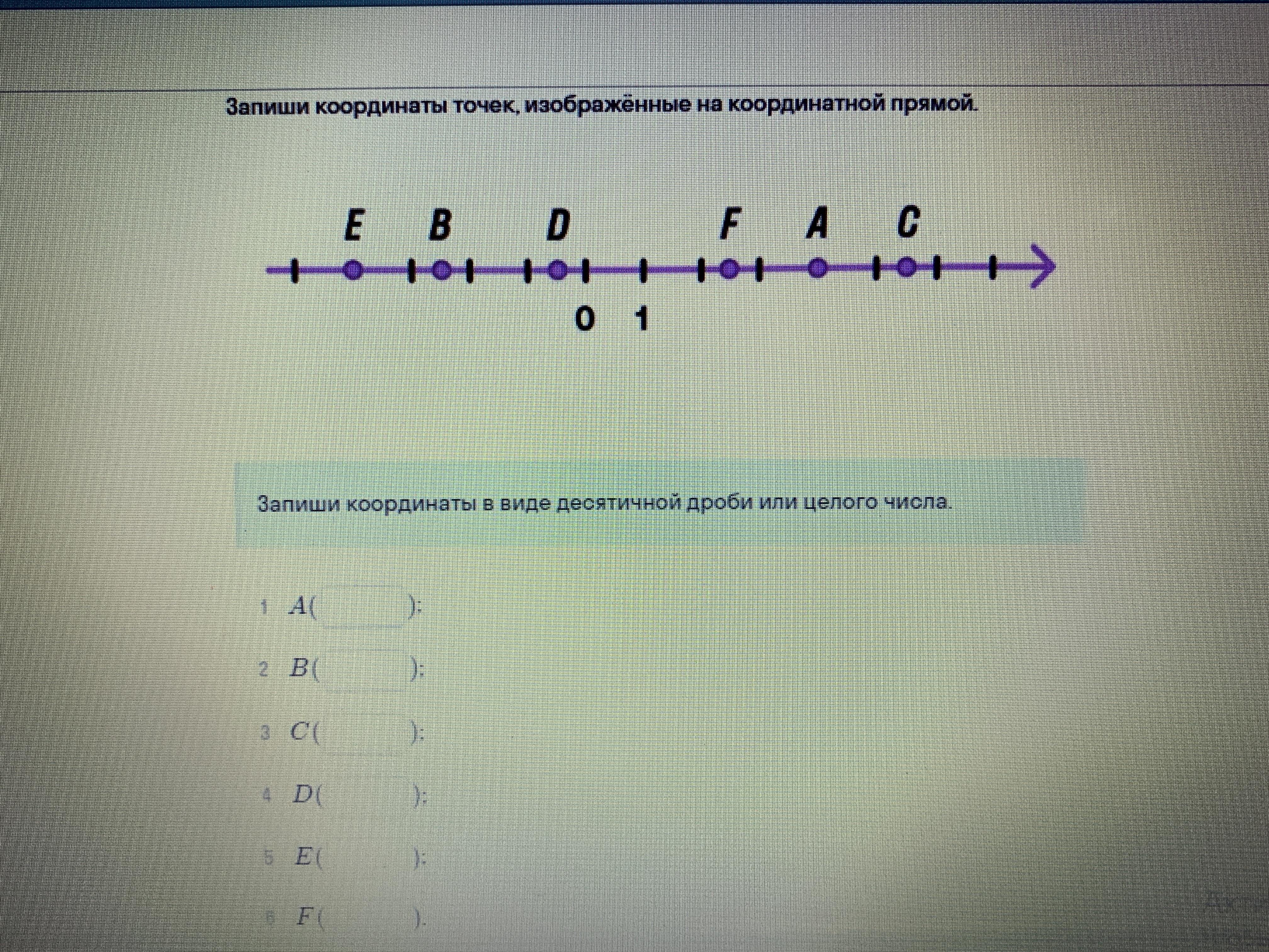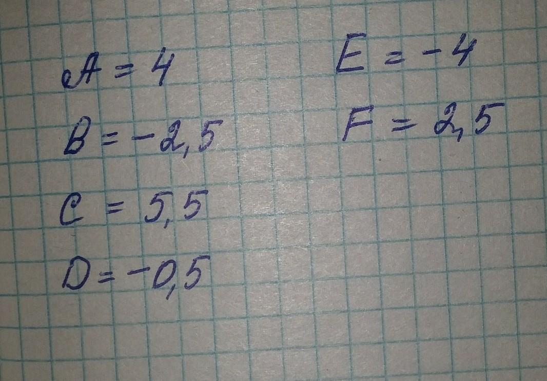 А(4) В(-2,5) С(5,5) Д(-0,5) Е(-4) F(2,5)