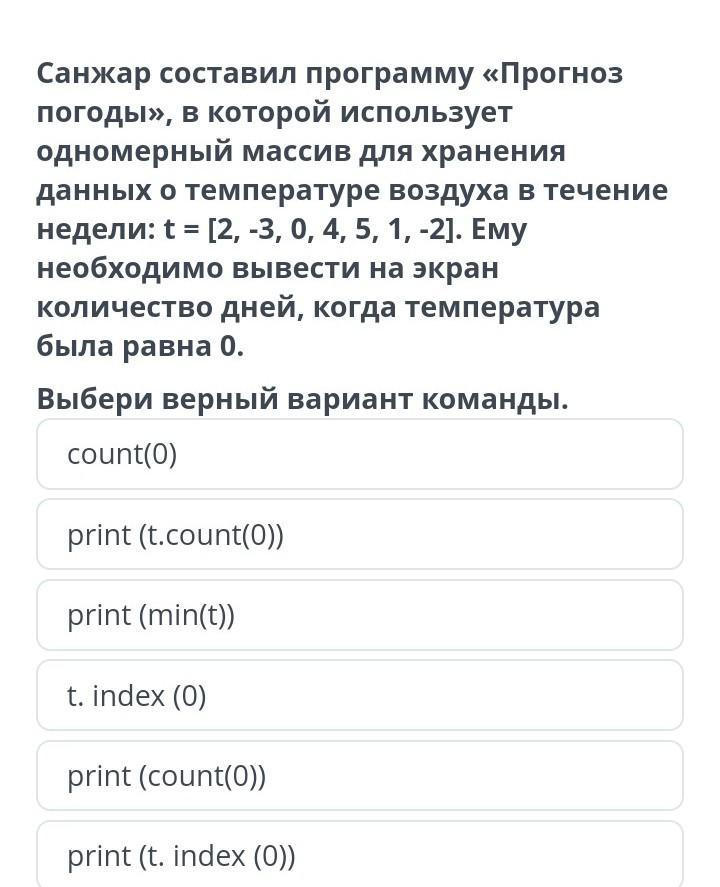 Санжар составил программу «Прогноз погоды», в которой использует одномерный массив для хранения данных о температуре воздуха в течение недели