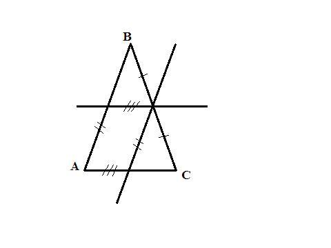 При построении параллельных прямых образуется четырехугольник со сторонами равным средним линиям: АВ/2=12/2=6 см, АС/2=14/2=7 см.