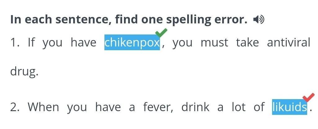 in each sentence,find one spelling error please please