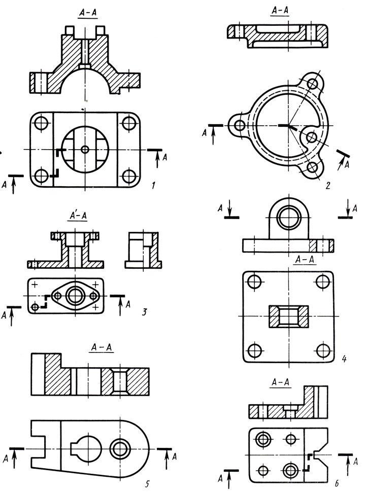 даны простые и сложные разрезы (ступенчатые и ломаные). Определите и запишите в тетради названия разрезов - простой (фронтальный, горизонтальный), сложный (ступенчатый, ломаный).