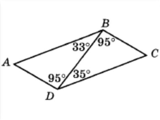 Используя данные, отмеченные на рисунке, укажите параллельные стороны четырёхугольника ABCD. Укажите правильный вариант ответа: AB и CD BC и AD