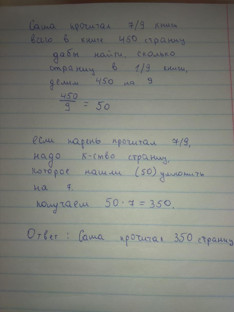 Ответ: Саша прочитала 350 страниц